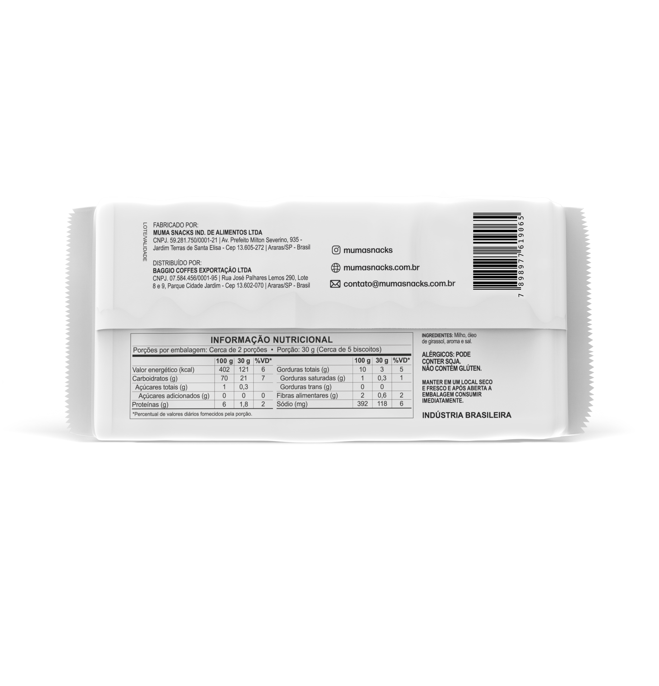 Descubra a Muma Snacks — o biscoito de milho que faz croc-croc de verdade! Feito de milho com ervas finas e um toque de azeite, é leve, crocante e cheio de personalidade.